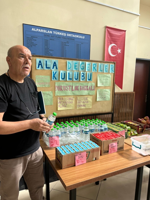 DÜRÜSTLÜK BAKKALI adlı bir proje düşündük. Market ve manav ürünlerinden oluşan ürünleri masaya koyduk. Fiyatları üzerine yazdık . Para kutusunu masaya bıraktık. "Kendin al kendin öde." dedik . Herhangi bir görevli bırakmadık ve öğrencilerimize güvendik. Günün sonunda öğrencilerimize güvenmekte ne kadar haklı olduğumuz ortaya çıktı. Herhangi bir eksiğimiz çıkmadı. ALA Değerler Kulübü rehber öğretmeni olarak öğrencilerimle gurur duyuyorum ve onları çok seviyorum. Projede görev alan öğrencilerime ve destek olan herkese çok teşekkür ediyorum.